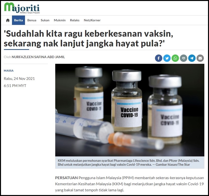 “Sudahlah kita meragui status vaksin terhadap keberkesanannya dalam menjamin kesihatan manusia dan kini, kita tiba-tiba dibebankan dengan vaksin-vaksin yang tamat jangka hayatnya.