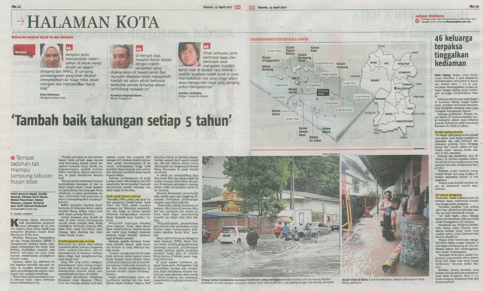 “Mungkin DBKL patut naik taraf sistem pengairan bawah tanah. Sejak tahun lalu PEKA sudah suarakan cadangan ini. Walaupun membabitkan kos tinggi, ia antara kaedah berkesan mengelakkan masalah banjir daripada terus berlaku,”katanya.