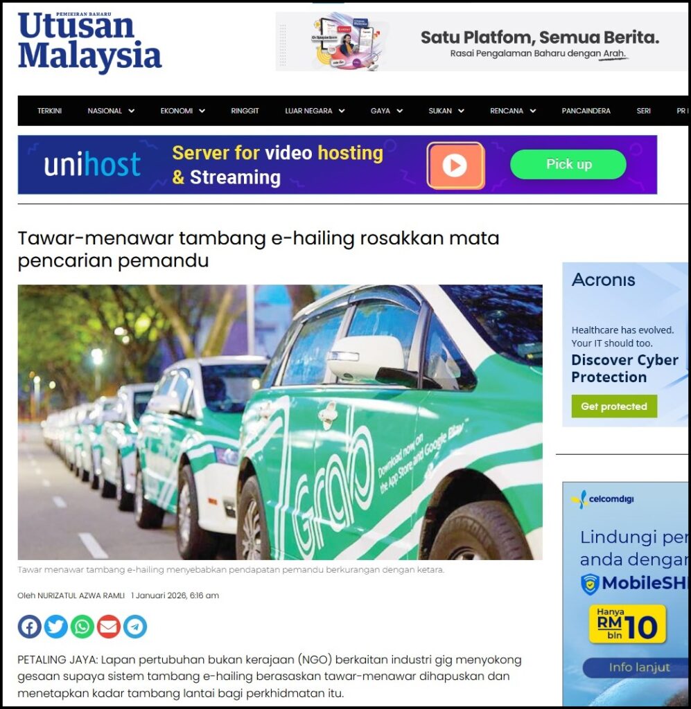 TAWAR-MENAWAR TAMBANG E-HAILING ROSAKKAN MATA PENCARIAN PEMANDU