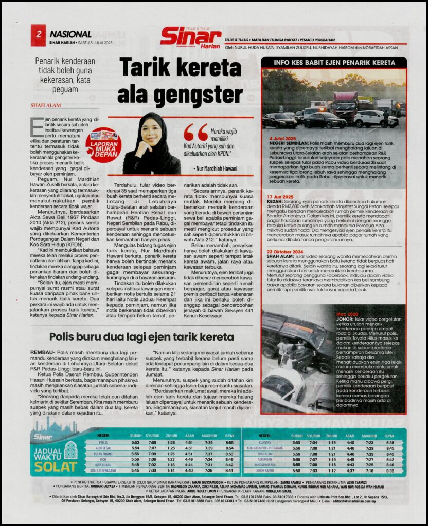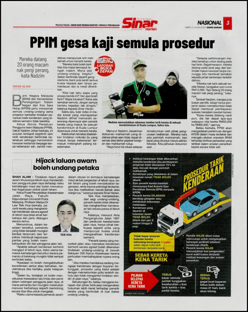 UNDANG-UNDANG RIMBA TARIK KERETA – SINAR HARIAN – 05/07/2025
