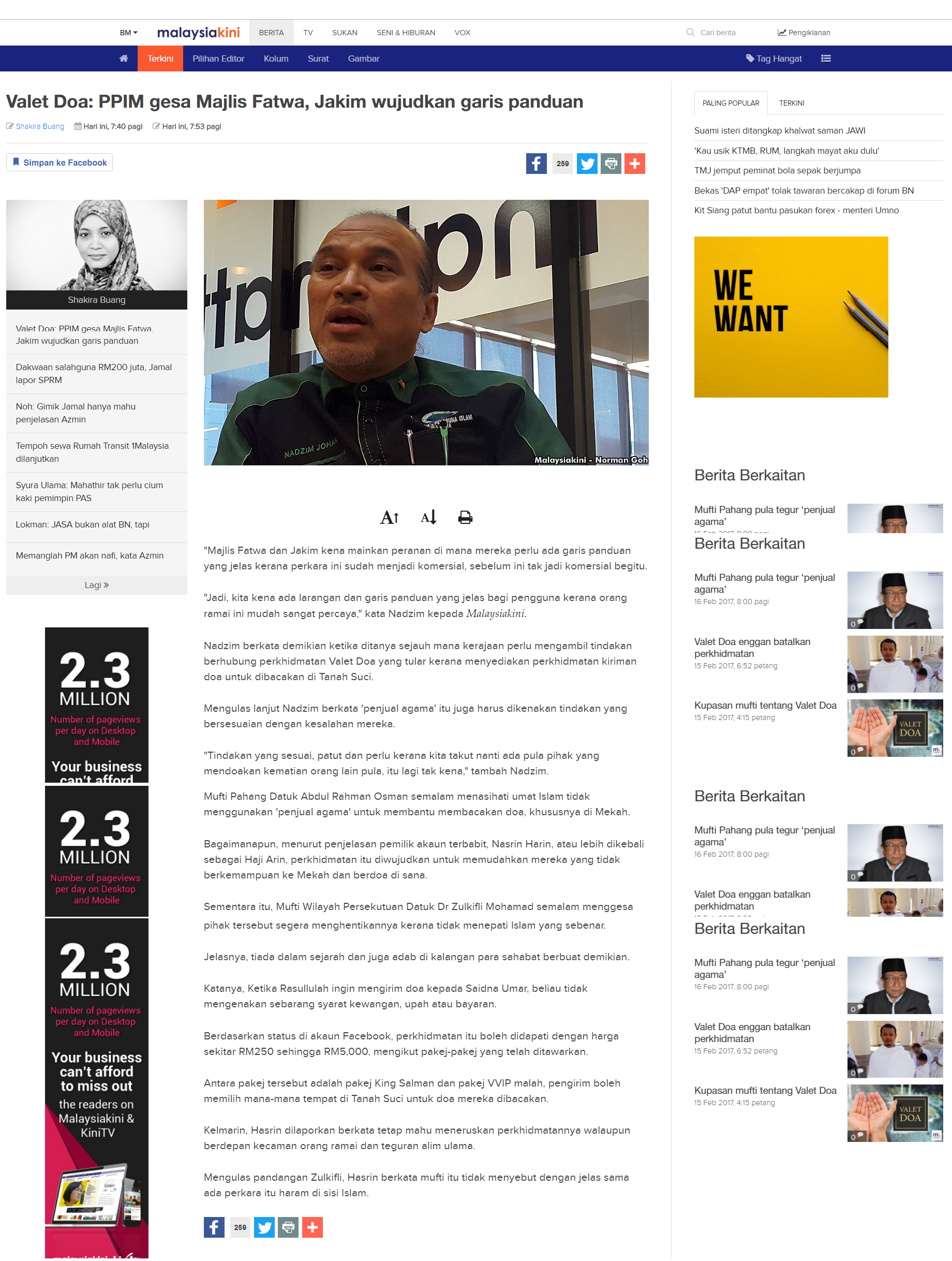 Nadzim berkata demikian ketika ditanya sejauh mana kerajaan perlu mengambil tindakan berhubung perkhidmatan Valet Doa yang tular kerana menyediakan perkhidmatan kiriman doa untuk dibacakan di Tanah Suci.