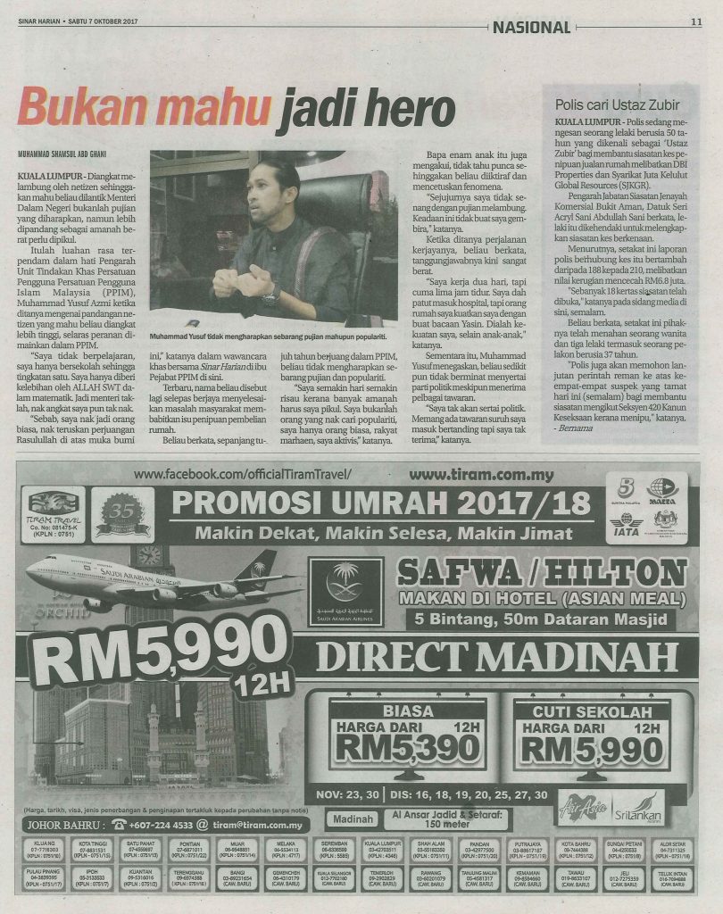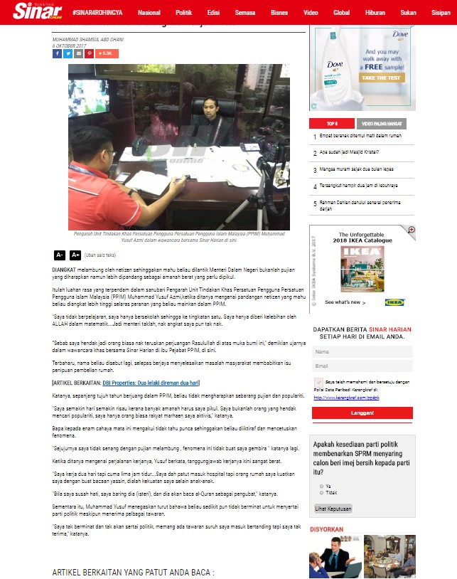 Itulah luahan rasa yang terpendam dalam sanubari Pengarah Unit Tindakan Khas Persatuan Pengguna Persatuan Pengguna Islam Malaysia (PPIM) Muhammad Yusuf Azmi,ketika ditanya mengenai pandangan netizen yang mahu beliau diangkat lebih tinggi selaras peranan yang beliau mainkan dalam PPIM.